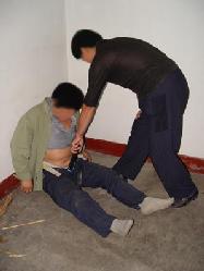 ![]() 强迫大法弟子整天坐在冰冷的水泥地上,用电棍电击大法弟子双耳、眉心、头部,颈部、胸部、四肢及下身。同时又穿着皮鞋使劲碾大法弟子的脚踝骨,抓住老年女大法弟子的头发往墙上撞,扇耳光 | ![]() 恶警指挥打手迫害大法弟子 |
