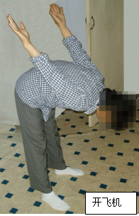 2、开飞机:长时间保持这种姿势,造成脚麻、双臂酸痛、头晕、腰椎与腿窝处疼痛。