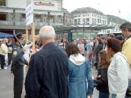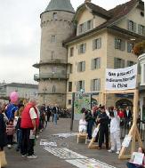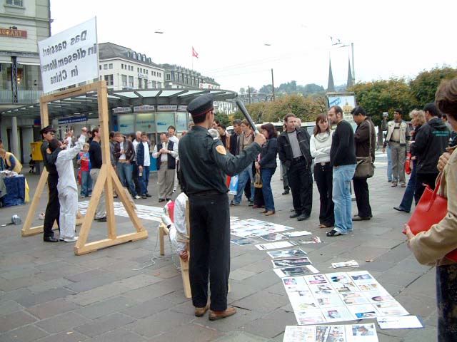 随着欧洲各国开放了对中国旅游的限制,到有欧洲花园之称的瑞士旅游的中国人也多了起来。这天就陆续来了不止三个中国的旅游团,他们停车的地方就是我们举行反酷刑展的地方。所以,他们一下车便看到了一大堆人围着观看的反酷刑展。学员们发现来了这么多中国人,自然不失时机的上前讲真象。听到真象的人,多数不敢发言,但能看出他们先是惊讶,而后再了解情况后对法轮功表示极为同情。有的频频点头,有的拿材料和拍照,更令人感动的是,有人随口说出:“法轮大法好!”许多人听得认真,看得仔细。有一个导游别有用心的说:“不要看了,不要看了,赶紧走!”然而他越是叫得厉害,来看的中国人越多,最后在大旅游巴士启动后,他们才不得不离开。