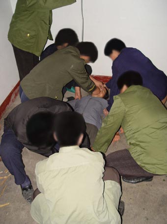 以下照片为根据当事人描述,由法轮功学员重组的当时迫害的情景: