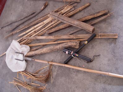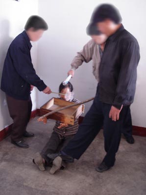 ![]() 用竹竿猛力击打大法弟子,直到竹竿打裂后换新的再打。 | ![]() 凶器 |