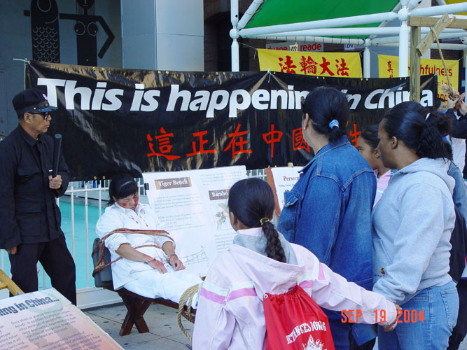 百老汇大道靠近我们反酷刑展附近有一家上海餐馆,我们吃午饭时手里没有资料,后来回去给老板带去一些资料,问他看过没有,是否知道真象,是否可以留一些资料给他的餐馆客人看。他一迭声说到,看过看过,我都知道,留材料在这里没有问题。临走时他还说,欢迎你们法轮功来吃饭,不吃饭也行,想来洗洗手,使用卫生间,都没问题。