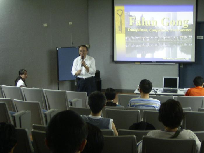 说明会结尾,新生也在问答时间踊跃的详细询问法轮功在大陆遭迫害的相关原因,学员们以影片形式向大家说明了中共江氏集团对中国法轮功学员迫害的真实情况。影片中说明了法轮功在中国大陆被迫害的严重性,许多在中国的法轮功学员仅仅因为信仰了真善忍,不愿对给予其新生的法轮大法抹黑,却被施加以酷刑迫害,迫害程度的严重性实在令人发指。这一切惨无人道的镇压却只因为中共前领导人江泽民的忌妒心所造成。现在海外的法轮功学员们利用着各种方式向世人说明法轮功真象,希望世人能够认清这场迫害,帮助早日制止这场灭绝人性的打压。