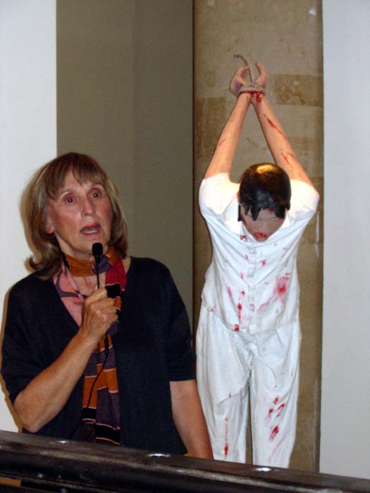 ![]() 为雕塑作品“主佛像”揭幕 | ![]() 张教授向观众讲解雕塑作品“死亡姿势” | ![]() 向观众讲解艺术作品及背后的真实故事 |