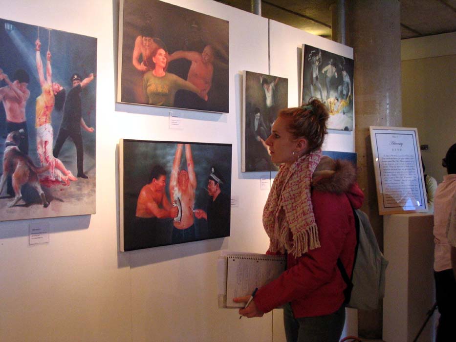 还有约克大学的人权与平等中心也是这次艺术展的赞助者之一,有他们的支持,才有画展的成功。另外,这个画展还要感谢学校里的学生来主动当义工,帮助接待来参观的人。