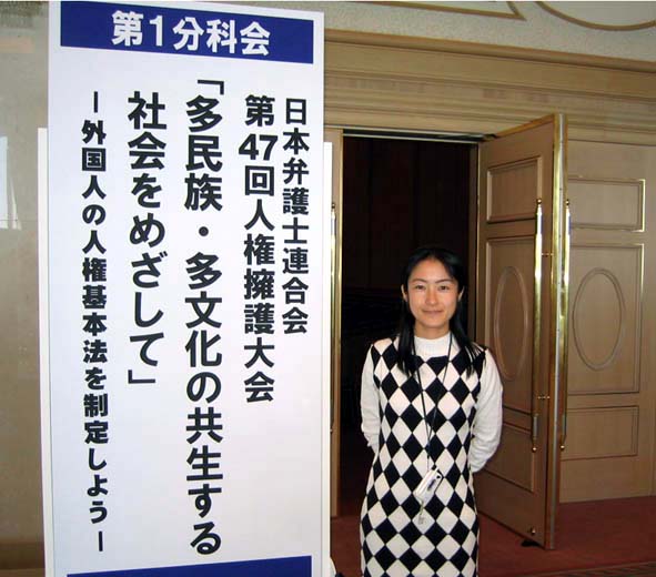 10月7日是大会开幕的第一天,一大早法轮功学员们就在主会场的外围祥和的等待着与会律师的到来。由于律师在日本的社会地位很高,平时要面见到律师是一件非常难的事情,而此时全国的人权律师要云集到这里,如何将在中国发生的江氏集团对无辜的大法弟子的人权蹂躏真象传达给日本的司法界,使他们对这场迫害有一个正确认识,这是学员们的心愿。出乎意料的在7日的上午,学员们就轻松的将准备齐全的600多份真象资料亲自递到了律师们的手里。