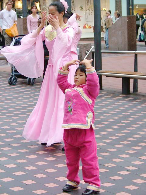 在表演的过程中,时常有当地的中国人和来自中国的游客经过,派发真象资料的学员不失时机的向他们介绍大法的美好,同时解答了部分人思想中还存在着对大法的误解。