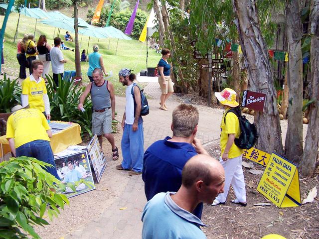 次日,我们在当地一个叫做“池塘”的集市设立了洪法摊位。许多人过来与我们交谈时说看到了我们的游行队伍,并且印象非常深刻。这为我们進一步向他们讲清法轮功的真象提供了良机。