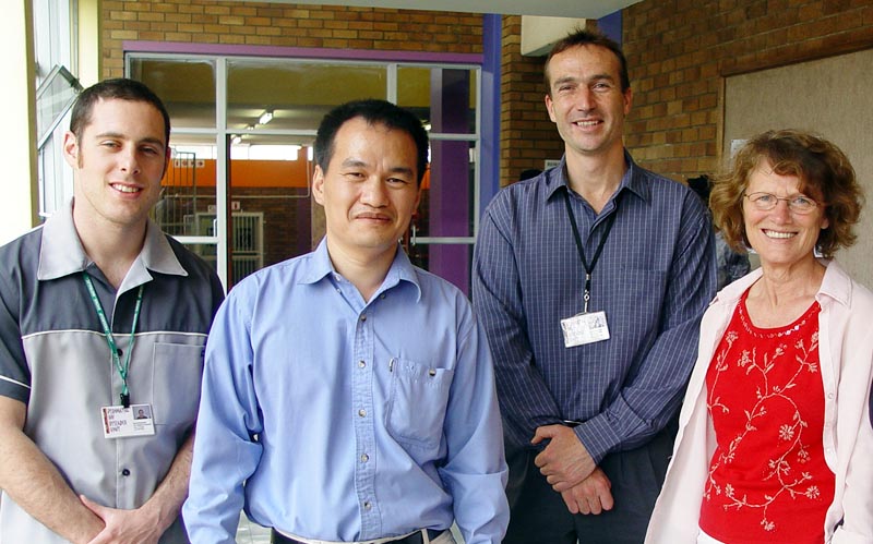![]() 在Christ Hani Baragwanath Hosital,梁大卫与该院心里社会学家罗宾逊先生(右二)、实习医生洛三田(左一)合影 |