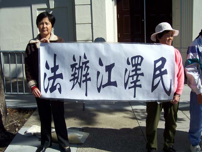 旧金山的刘女士说,在江氏集团迫害法轮功学员的五年中,不但有许多修炼真、善、忍的法轮功学员被迫害致死,江集团还用谎言宣传毒害了很多中国人。元凶江××以及主要帮凶必须为此承担责任。