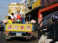 说明会后,游行车队开始绕行永康市主要街道。车队由法轮功的真象广播车引导,接着是功法展演车,为民众带来祥和平静的清新感受。随后是六十辆机车所组成的机车队,整个队伍井然有序、不急不徐的前进,体现了修炼者沉稳平和的特质。