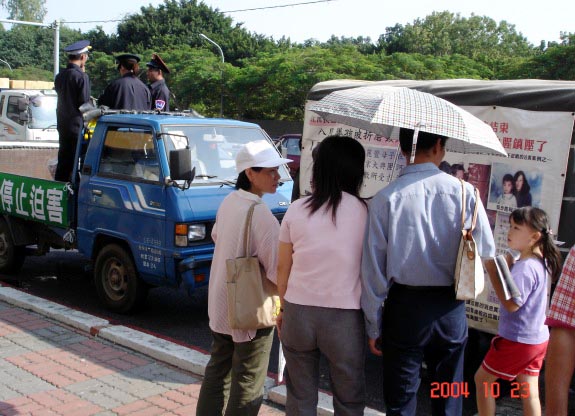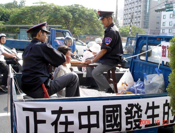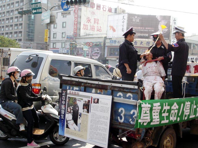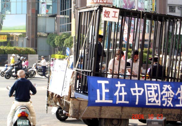 接续在后的真人模拟酷刑展示车让许多民众好奇的想一窥究竟,却又不忍卒观。铐刑、吊刑、插竹签、坐老虎凳、强迫灌食、关小牢笼以及长时间做奴工等等,一幕幕怵目惊心的画面却都只是受迫害真象的一小部分而已,更骇人听闻的酷刑尚未展出。生活在自由社会中的台湾民众看过之后都表示:“实在是太恐怖了!没想到在二十一世纪的今天,还有这么野蛮的事情发生。”