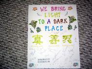 我们把真象资料放到了一个小桌子上并将展板放好。我们发了数千张传单,并制作了一种要发送到北京团河劳教所和新安劳教所的特别卡片。在这些劳教所中,法轮功学员正遭受最野蛮的酷刑。