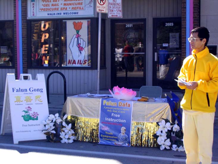 学员们还展示了五套功法。一个骑自行车的人经过时立即停了下来,他说,“你们在做什么?怎么这么祥和。”在向他解释了功法和其益处,以及法轮功是什么之后,他说,“我患有严重的焦虑症,已经几年了。只有离开家,骑在自行车上,我才会感觉到安全。来到你们这儿才一会儿,我就感到很安全和祥和。”他说,非常感谢学员们,并表示要学法轮功。他在炼功点久久不愿离去。