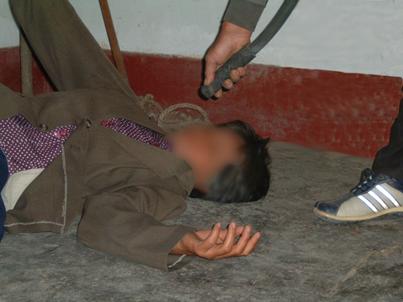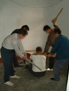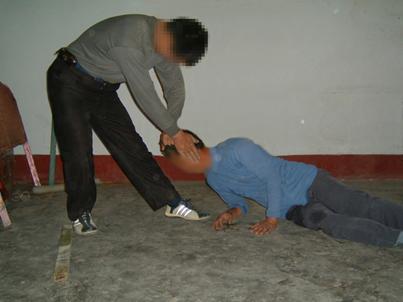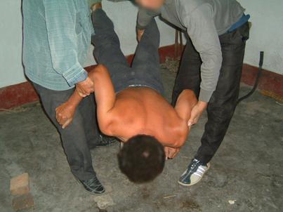 ![]() 2000年10月,于河大法弟子被于河镇4、5恶人,威逼其双手伸直打开,然后毒打他。 | ![]() 2000年10月6日,于河王新民等恶人,将大法弟子脱去上衣,用胶皮棍殴打。 |