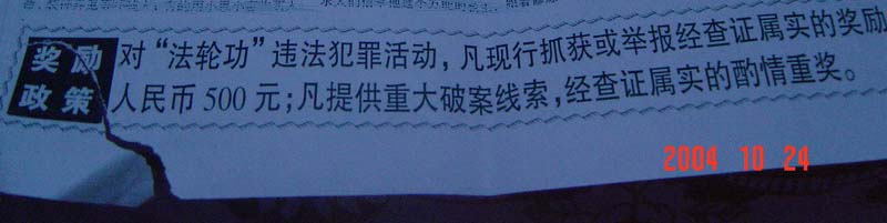 610办公室为刺激民众出卖良心,诱骗不明真象的人协同610违法犯罪,明文标价“奖励500元人民币”。