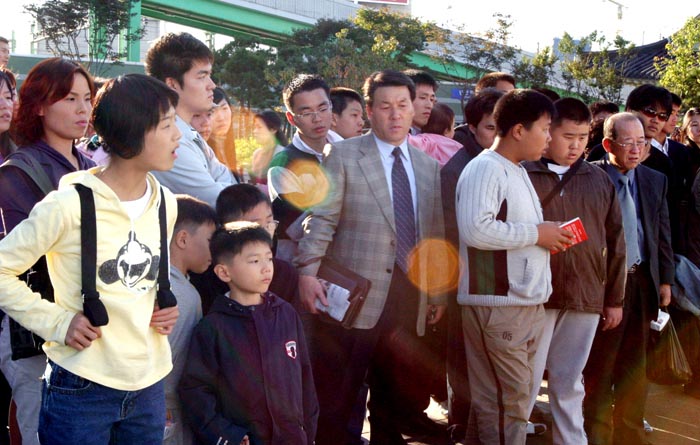 【明慧网2004年10月29日】水原是连接韩国京畿道南部的重要枢纽城市,每到周末,来自于周边中小城市的许多外国劳务人员都要到水原站来乘车。2004年10月23日(星期六)我们在宽阔的站前广场上举行酷刑展,向世人展示中国大陆法轮功学员在镇压中所受的残酷迫害