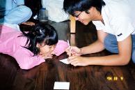 学习法轮大法的经文《洪吟》及炼功。在场一位年仅四岁的小妹妹说她最喜欢炼功了,摆起动作可是架势十足呢!