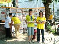 还有一位年约50岁的男子,走近展板时,一位才刚修炼两个月的学员向他有系统的介绍法轮功,学员的诚恳和善,让他的表情,由怀疑到相信,最后坚定的告诉学员,他也要修炼法轮功。这位新学员修炼虽然才短短的两个多月,就很快的走出来向人们洪法讲真象,他说:“虽然得法才短短的两个多月,但师父的法理时时出现在脑海中,生活上一思一念均以师父的法理‘真善忍’来要求自己,并且生活溶于法中,真是感到无比的自在与喜悦。”