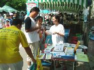 在洪法展位旁有个鳟鱼养殖场的摊位,那家摊位老板娘的儿子,刚好是法轮功学员教过的学生。在他的摊位较空闲时,学员和他介绍功法,他才忆起几年前他曾经在书店买了一些书,一看到学员拿的《转法轮》,他说:“对!对!我买的就是这本,我当时把其他的整套都买了,但都没时间去翻。”在听完学员的介绍后,他说回去要好好再把书拿出来仔细看一看。而在一旁的员工也在学员详尽的介绍后,参加了接下来的“法轮大法九天学习班”,还邀了一位朋友一同参加,这真是非常巧妙的安排,许多有缘人都在等着修炼机缘的到来。