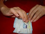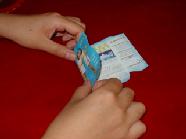图四:把带有粘性的花安适洁护液,粘到花安适包装彩页中间的指定位置。