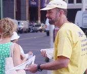 这里的人们似乎永远步履匆匆,天天忙于他们的工作和生活,而没有时间顾及其它,绝大多数人只有几秒钟的时间接触真象信息。然而法轮功学员们持续的努力使人们逐渐的知道了法轮功,知道了法轮功在中国被迫害。
