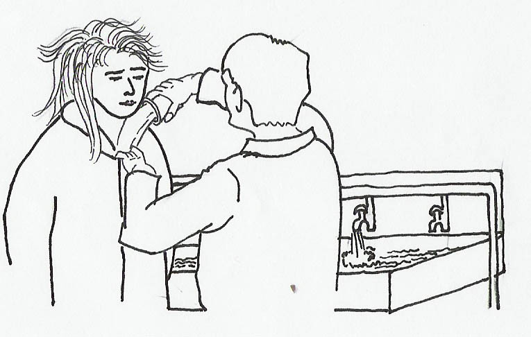 十二月的寒冬天气,马增友还把我拽到水池边用冷水一杯杯的从脖子处浇到衣服里,后来的一、两天,我硬生生的用体温把衣服暖干。如下图示: