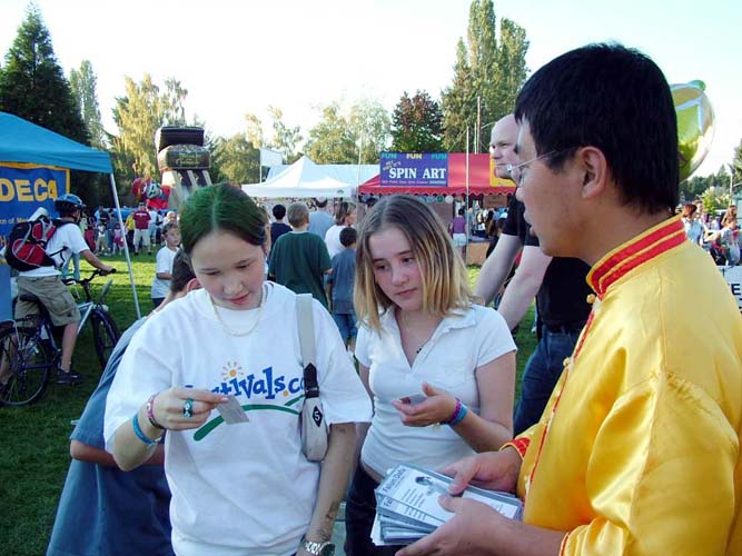 如我的同事所知,有相当大数量的法轮功学员居住在美国。他们通过和政府官员会谈及和平请愿的方式,希望让更多的人知晓他们的同修所遭遇的恐怖。就在今年8月,法轮功学员汇集在国会前的广场,分发传单,告知美国人有关那些和他们有共同信仰的人所遭受的巨大痛苦。