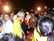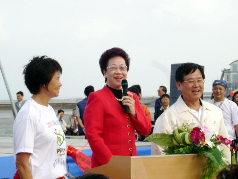 ![]() 上千人穿着“生命需要真善忍”的T恤开跑 | ![]() 吕副总统(中)及澎湖县赖县长(右)在马拉松大会中致词 |