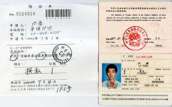 7月4日,我到领事馆准备领取新护照时,办事的日本女孩子却怎么也找不到我的新护照,感到不可思议,询问身边的办事员也不知所因,最后到里面去询问,来了一位男性负责人,说我的情况比较特殊,要请示中国国内有关方面之后再给我答复。(这时我意识到我上了中国政府的黑名单了) 几天后那位负责人给我来电话,说不能给我更新护照,让我到领馆去把旧护照领回去。当我再次到领馆时,那位办事的日本女孩子,马上把那位中国负责人请来,我问他为什么不给我更新护照时,他只是说,“这是中国方面决定的,原因你自己知道。”就让办事员把旧护照还给我。我看到那位日本女孩子给我护照时,脸上充满了歉意和无可奈何。我想她是理解不了中国政府就这么毫无道理的不给自己公民办护照的。我递给了她两张关于中国打压法轮功的真象材料。她欣然的收了下来。