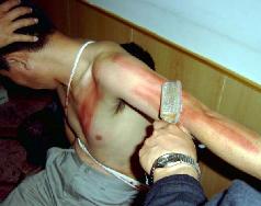 酷刑演示:大庆劳教所将大法弟子皮肤刷烂(图)