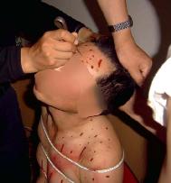 酷刑演示:大庆劳教所给大法弟子扎针(图)