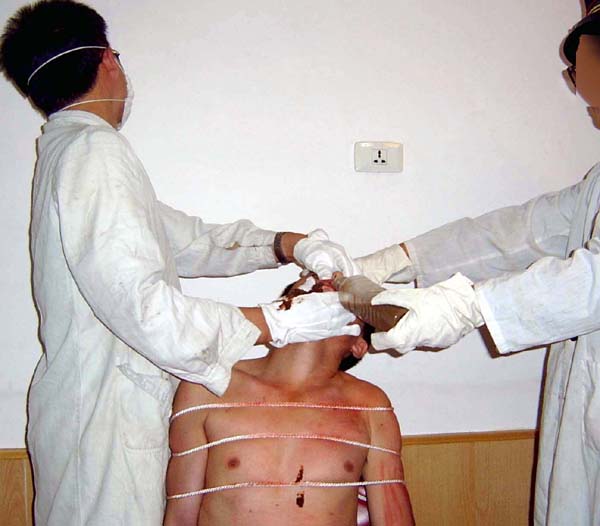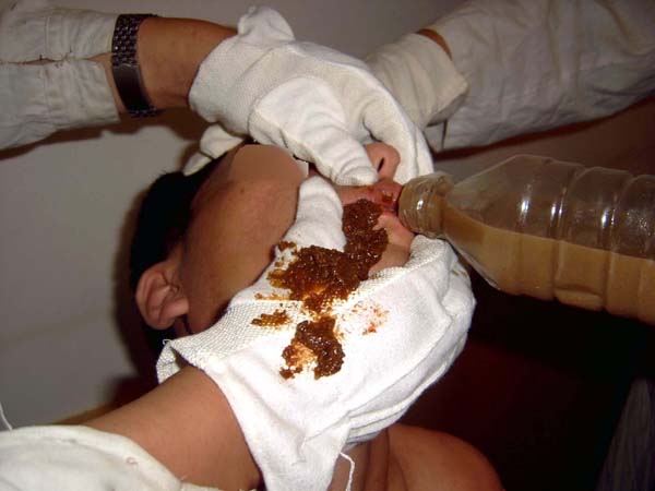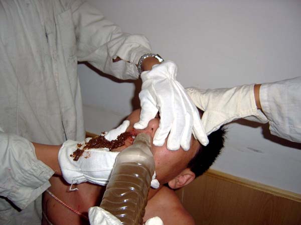 酷刑演示:大庆劳教所给大法弟子灌屎、灌尿(图)