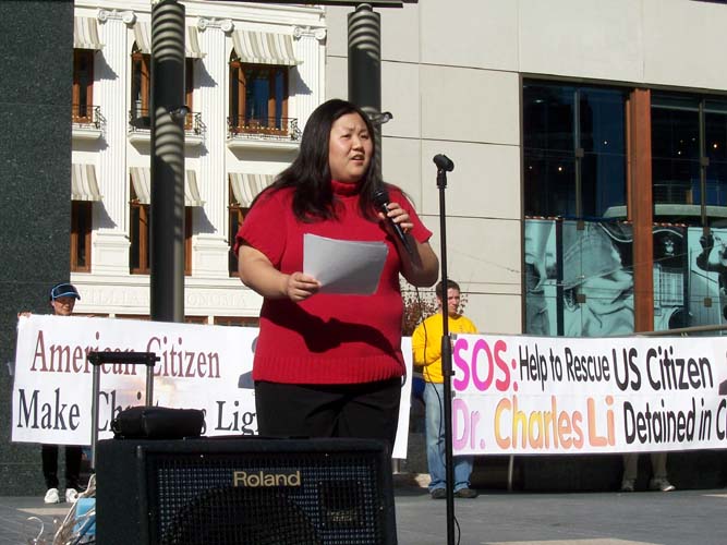 加州国会众议员芭芭拉-李(Barbara Lee)非常支持法轮功,并关注李祥春在中国的遭遇。不久前,她还共同发起了谴责中国政府迫害法轮功的304决议。芭芭拉议员的代表康妮(Connie)在集会中说,“国会议员派我转达她对查尔斯医生的支持。查尔斯在南京受到不公的拘留和监禁。我认为思想自由是最基本的自由。中国政府只是因为法轮功学员炼功、有自己的信仰,就将他们关進监狱。中国政府对法轮功的迫害就是对信仰自由和言论自由的迫害。”