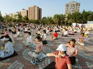 ![]() 在附近的儿童游乐场集体炼功 | ![]() 公园入口处的反迫害酷刑展 | ![]() 支持早日停止迫害的签名民众 |
