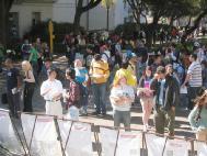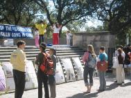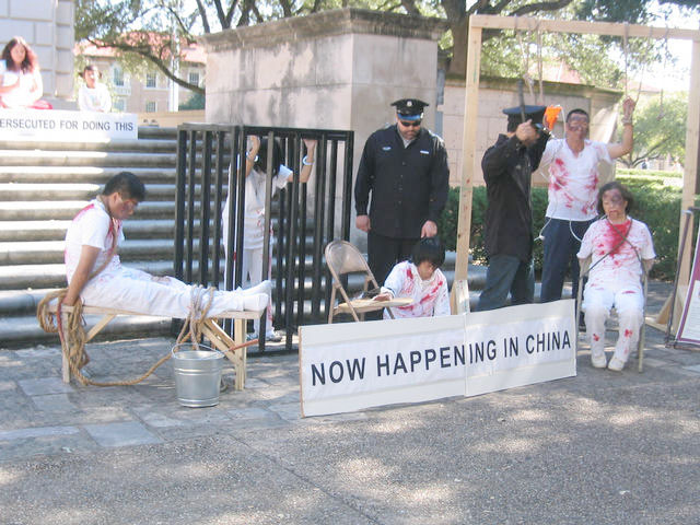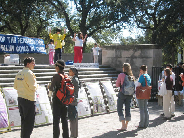 许多学生仔细的阅读展板上的内容,并积极询问如何帮助结束这场发生在中国的疯狂迫害。一位学生表示如果他是市议员的话,一定会想办法推动法案抑制这场迫害。好几位学生不敢相信在今天,还有这样残暴无理的事情发生在中国。一对情侣带着凝重的神情,震惊的看着学员真人演示的酷刑展,当拿到学员递给的报纸,他们十分感谢学员们告诉他这些信息。 此外,还有一些学生希望能学习法轮功,他们很高兴的知道校园内就有炼功点。