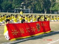 运动会开幕后,学员们除一起观赏热闹有劲的各项比赛外,并在各区拉拉队分送亲手制作的纸莲花、洪法书签坠子及学员的修炼心得,让这些年轻学子们在看过功法表演后,能进一步了解法轮功祛病健身的效果以及为何在世界60多国受到欢迎与肯定。
