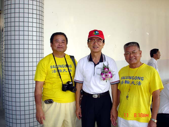 ![]() 邱荣义校长颁发感谢状后与法轮功学员合影 |