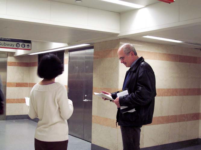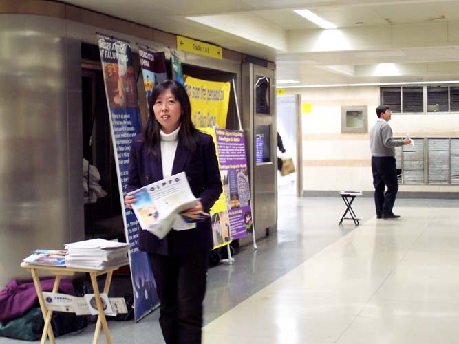 这天,一位中国人走向学员,说:你们做的很好,要让更多的人了解迫害。火车站台上有很多人,在那发报纸是最好的。