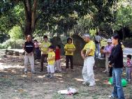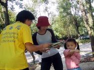 当天风和日丽,溪洲公园平时的旅客并不多,这一天因为有活动,加上其他的游客,显得特别的热闹欢乐。小朋友们开心的主动的上前表示:“阿姨,我要汽球。”并纯真的读着汽球上面的几个大字─“法轮大法好”。大陆籍的妈妈们微笑着感谢学员赠予的资料。他们显露着愉快的神情,有的还主动的要资料,其中几位说:“我还要另外那一份啊!”