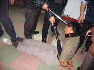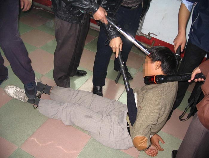 2000年7月26日,我在去天津街的路上被几个不明身份的人绑架到了吉林市公安局一处。有个姓孙的老头,他们说是处长,和几个恶警对我進行一番恐吓,看问不出什么就气急败坏的指使恶警用刑。恶警让人都出去,对我说:你不说,这回让你尝尝魔鬼的办法。他用椅子卡住我的头,猛抠软肋,剧痛难忍,使我几乎疼晕死过去。(图1)