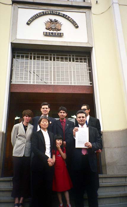 ![]() 戴志珍与律师在玻利维亚总检察长办公室外合影 |