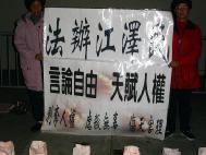 ![]() 法轮功学员要求法办江泽民 | ![]() 法轮功学员在中领馆请愿 |