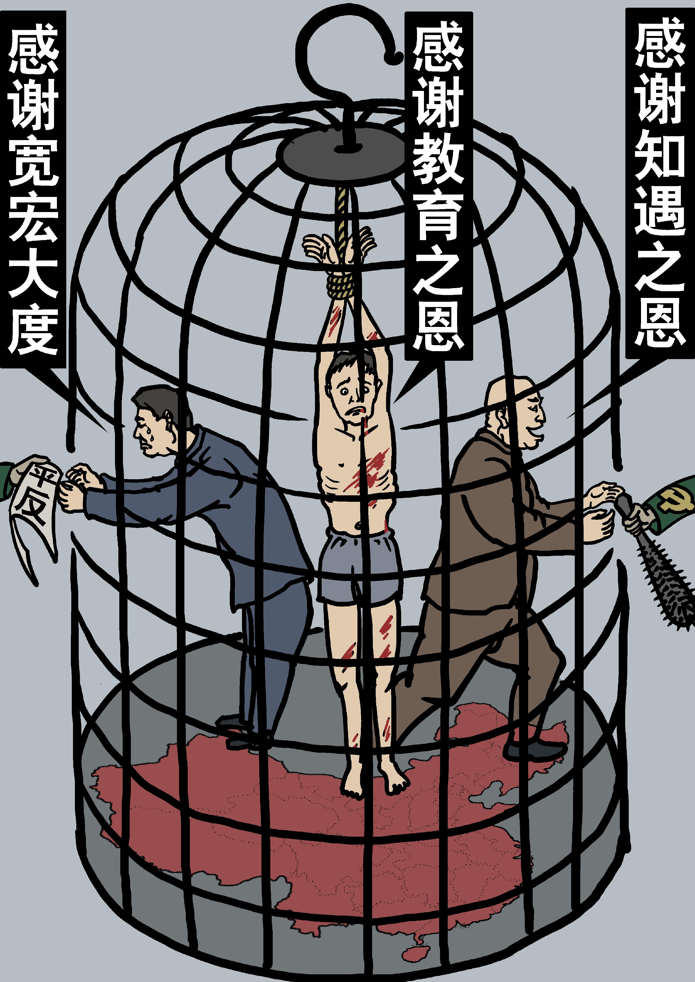 共产党控制的残酷性不仅仅在于肉体上的折磨,而是使人逐渐变成没有独立见解,或有独立见解,却不敢放言,以保平安的懦夫。它的统治目的在于给人人洗脑,让他们想共产党所想,言共产党所言,行共产党所倡导的事。人讲:“党的政策像月亮,初一十五不一样”。但是不管共产党怎样变来变去,全国人民都要紧跟不舍。当你作为被依靠的力量去打击别人时,要感谢共产党的“知遇之恩”。当你受到打击时,要感谢共产党的“教育”之恩。当你知道打击你是错误的,要给你平反时,又要感谢共产党的“宽宏大度、知错能改”。共产党的暴政就是在不断的打击与平反中得以实施的。