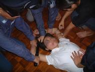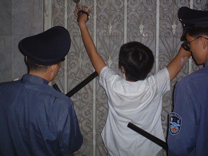 第一次,2000年1月25日,早上5:30在劳教所操场上我们被强迫走队时,我坐下来打坐炼功,因为我想劳教所没有权力强制我们,不让我们炼功,我们没有犯罪。