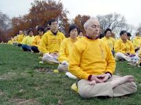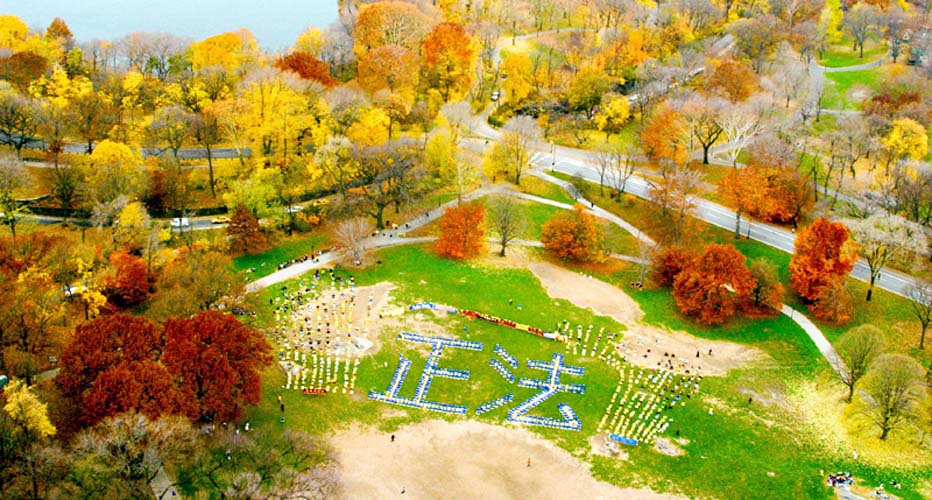 千名学员中央公园排字炼功 展现法轮功的美好(图)