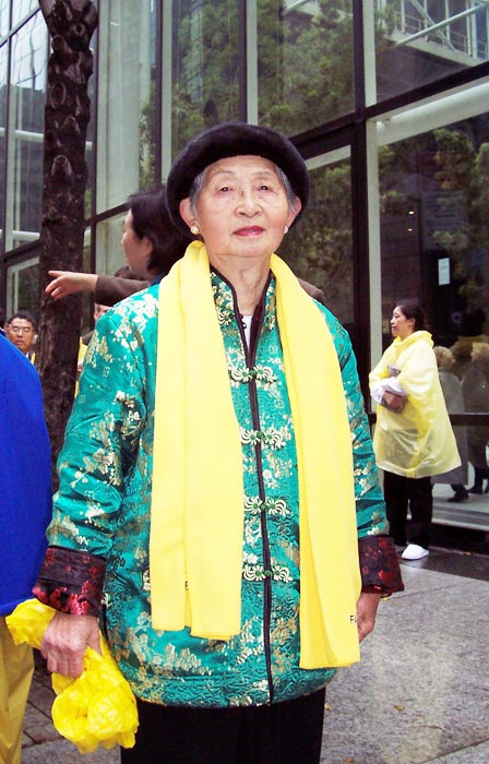 83岁的马春浦女士来自美国的加利福尼亚州。本月20日的大游行从36街到56街,马女士随着游行队伍沿麦迪逊大道,走完全程的20条街。
