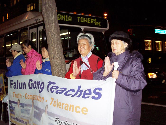 马女士说:“曼哈顿是世界金融中心,我来这里是要把法轮功真象告诉世界人民,呼吁所有善良的人共同制止迫害。”