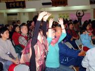 【明慧网2004年11月26日】2004年11月20日,台湾新竹县美容商业同业公会举办一年一度的联欢活动,法轮功学员受邀参与盛会。为把法轮功的美好带给现场的民众,法轮功学员们准备了功法表演及音乐表演,这其中也包括10位法轮功小弟子的音乐表演,过程庄严而祥和。
