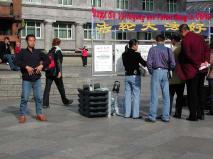 我第一个认识的是H先生,刚届中年,去年底开始接触大法。读了《转法轮》后,真正明白了如何做人的道理,又看了教功光盘,觉得功法也挺好,就在工作之余比比划划自学自炼起来。不知不觉间他多年的腰痛病没有了,还有其它的一些病状都消失了,遂于今年四月正式走上大法修炼之路,不仅到其它城市的学法点参加学法和炼功,同时也参加各种洪法讲真象活动,还引领已看过大法书的友人M女士和Z先生正式走入法轮大法修炼的归途。